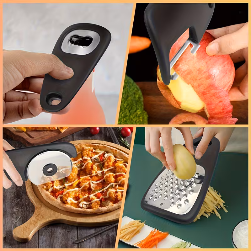 Zamislite da ste u prirodi i želite da pripremite jednostavan obrok – salatu, testeninu ili roštilj dodatke. Umesto da nosite više različitih alata, ovaj set vam omogućava da sve uradite brzo i efikasno, sa minimalno opreme.